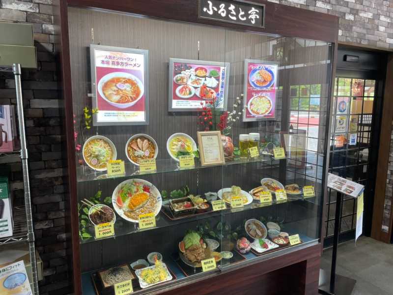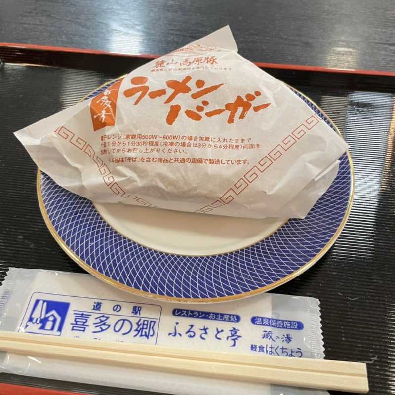 こちらの食事処『ふるさと亭』では、喜多方ラーメンを応用した「喜多方ラーメンバーガー」、スープで米飯を炊いた「ラーメン丼」、麺を生地にした「ラーメンピザ」など、喜多方ラーメンにちなんだ様々な創作グルメを提供しているので、気になり行ってみることにしました。