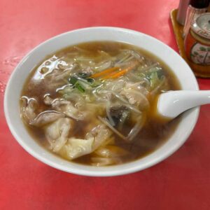 中華風の味付けのあっさりした醤油スープで、肉は少なめ、野菜はモヤシを中心にシャキシャキ食感、大好物のキクラゲが大ぶりなのが嬉しいです。