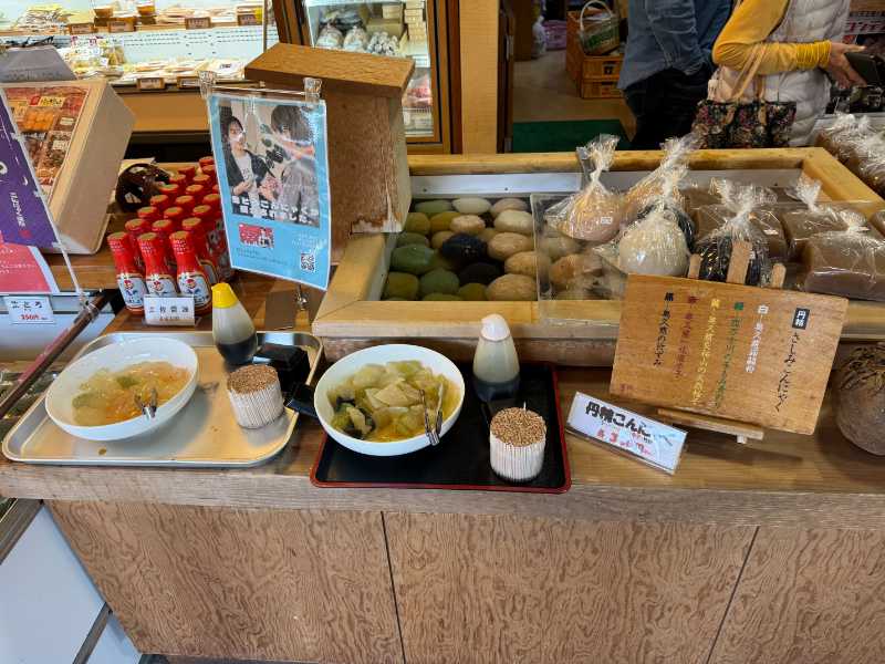 今回食べたかった「刺身こんにゃく」と「凍みこんにゃく」は『こんにゃく関所』で販売しており、お食事処でも提供しているので、行ってみることにしました。