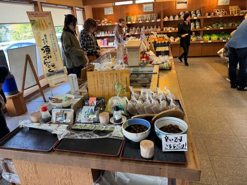 店内にはお食事処も併設されており、手作りうどんや奥久慈名産を活かした料理とともに、作りたてのこんにゃくを堪能できます。