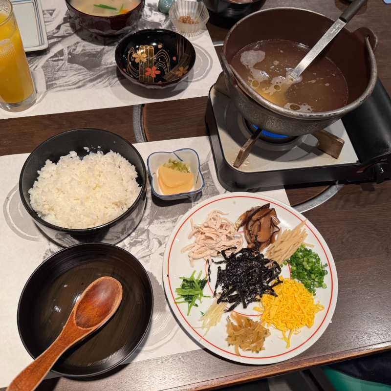 鶏スープはガスコンロで熱々に温められており、まるで鶏清湯ラーメンのスープのような芳醇でコクのある味わい。