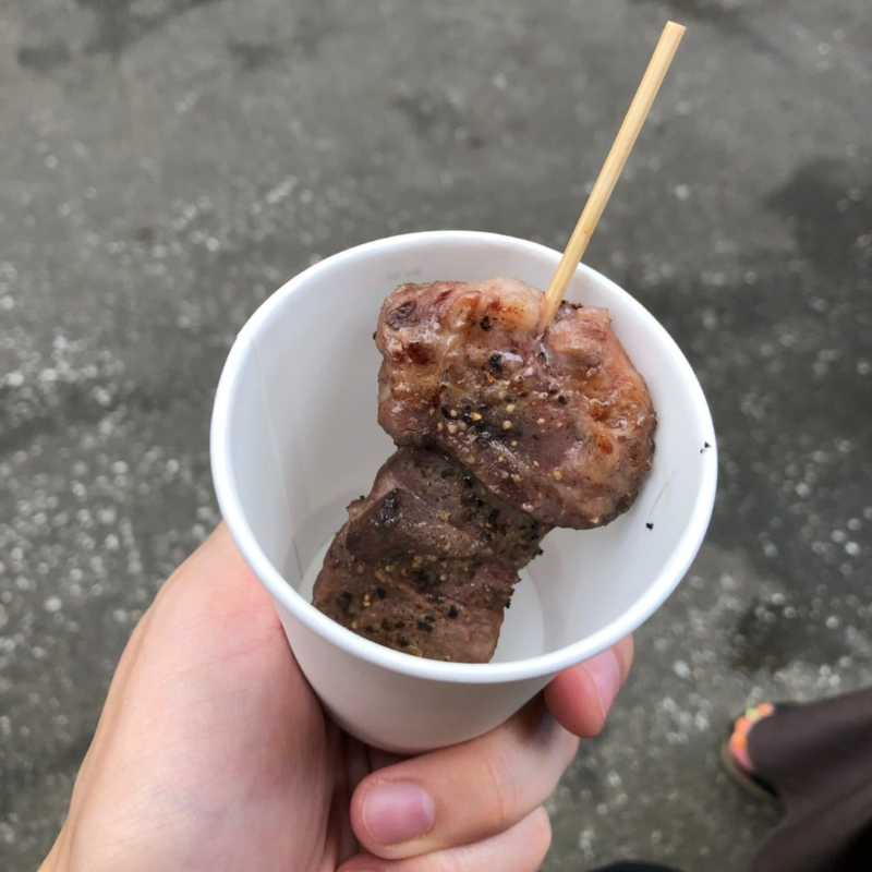 「猪肉のステーキ串」はクセも臭みもなくてとても柔らか、程よく脂が乗ってこちらもジューシー、粗挽きのブラックペッパーが相性抜群でした。