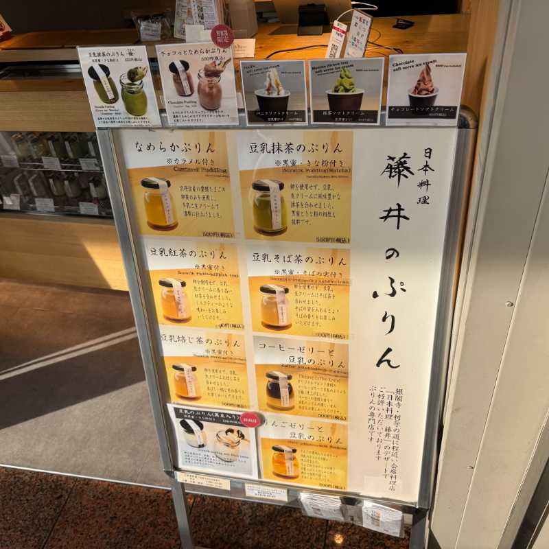 豆乳、お茶、そばを使ったプリンなど、京都の会席料理店ならではの商品ラインアップが魅力的で、とても気になり、今回初訪問です。