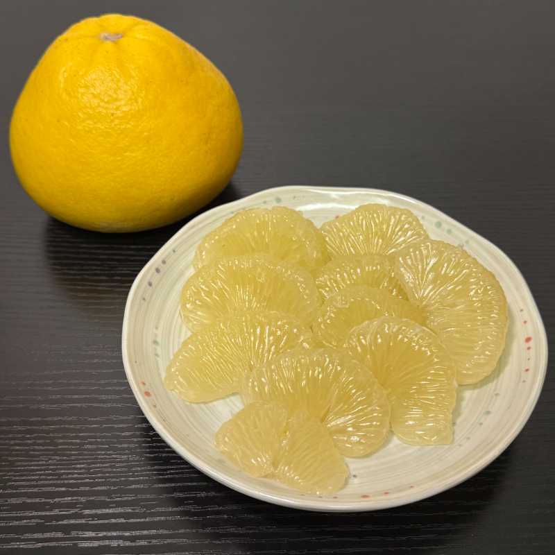 文旦の果肉はシャキシャキとしたかための食感ですが、噛むと果汁が弾け、程良い酸味と苦味、さっぱりとした甘さが相まった爽やかな味わい。