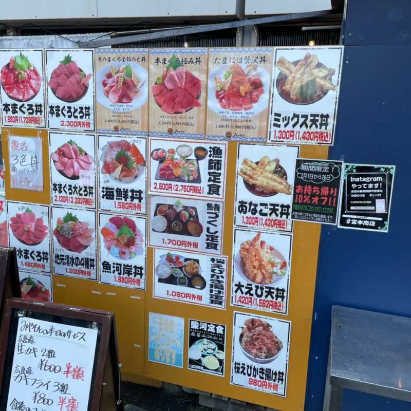 静岡県静岡市清水区にある、朝からまぐろ丼をはじめとした海鮮料理が楽しめるお店『宮本商店』。