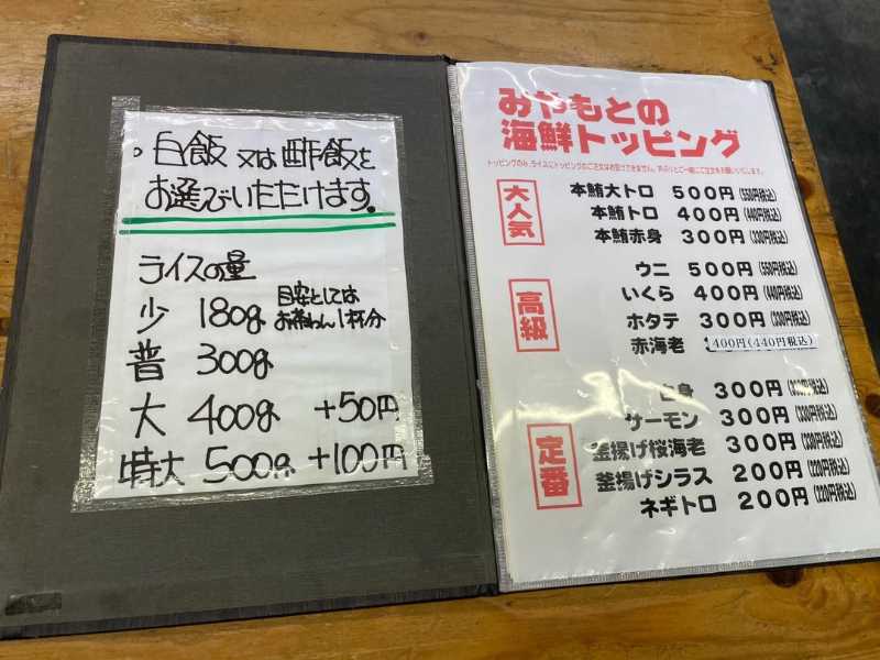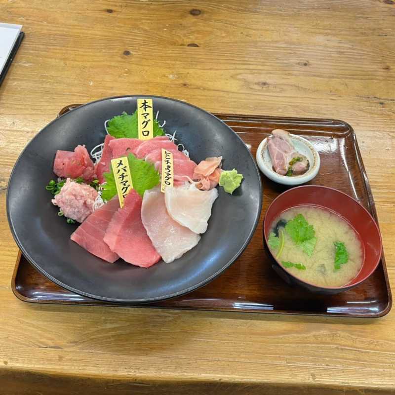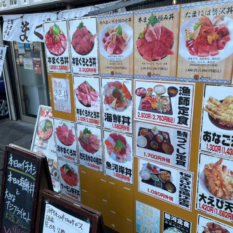メニューはまぐろ系の丼物を中心とした豊富なラインアップ。