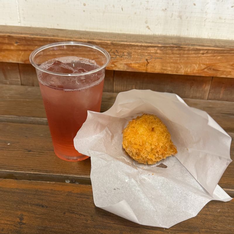 「山梨産ぶどうビネガードリンク」はぶどうのフルーティさとお酢の味わいが相まったさっぱりドリンクで、揚げ物とも相性が良く、こちらも美味しかったです。