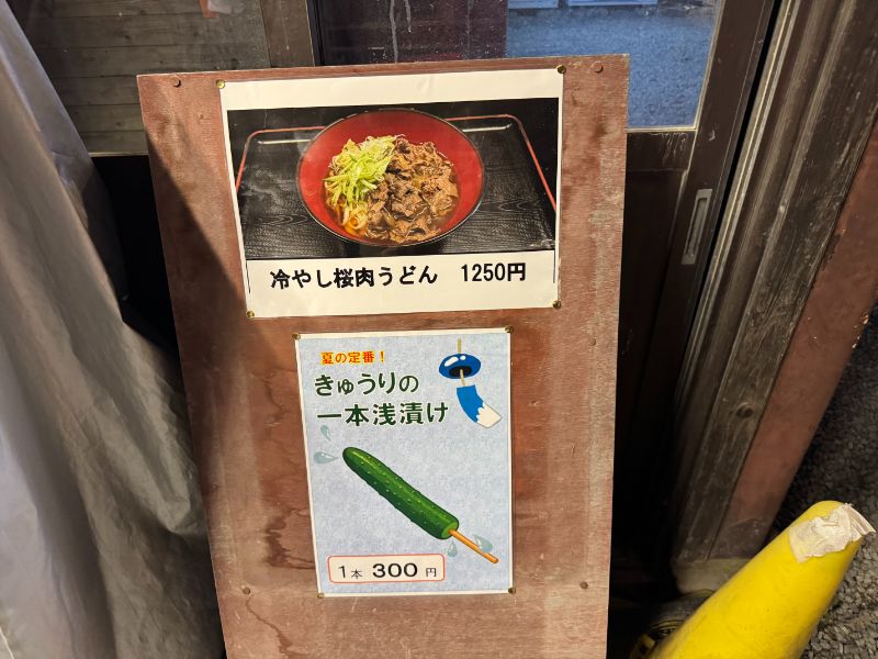 温泉施設のそばにはおみやげ屋、軽食スタンド「桃太郎」、「気まぐれ屋」というお店があり、今回は温泉後に『桃太郎』に訪問。