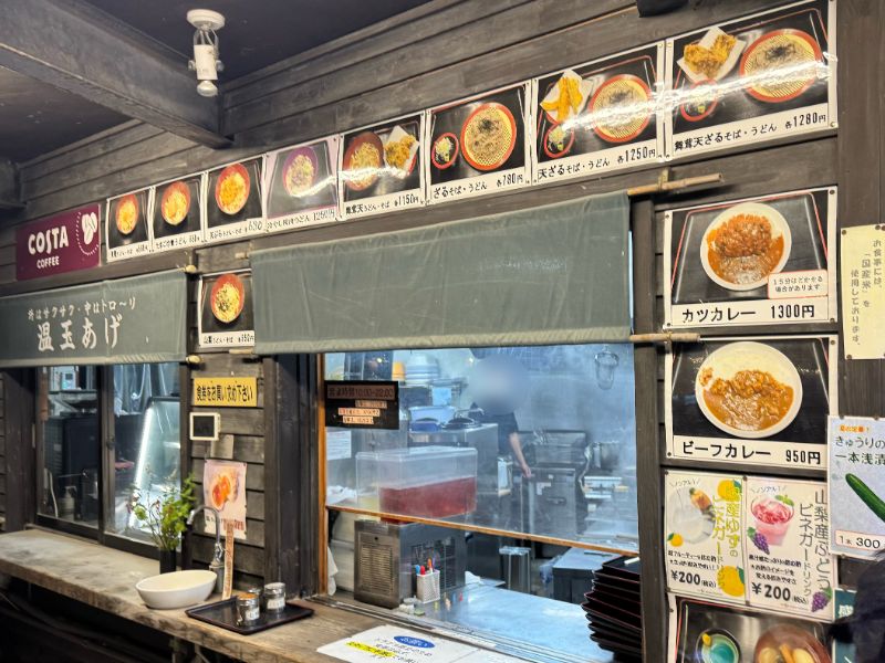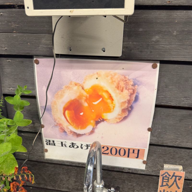 こちらのお店ではそば、うどん、ラーメン、カレー、ソフトクリームなどを提供しており、中でも名物として知られているのが「温玉あげ」。