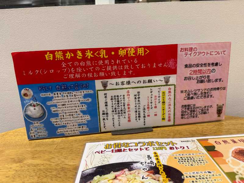 次回は「南海の黒熊」や、抹茶、チョコ、ヨーグルト味の白熊など、未食のメニューを新規開拓したいと思います。