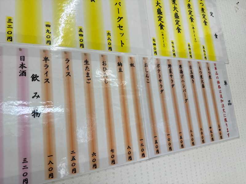 今回は「もつ煮大盛定食(半ライス)」を注文!