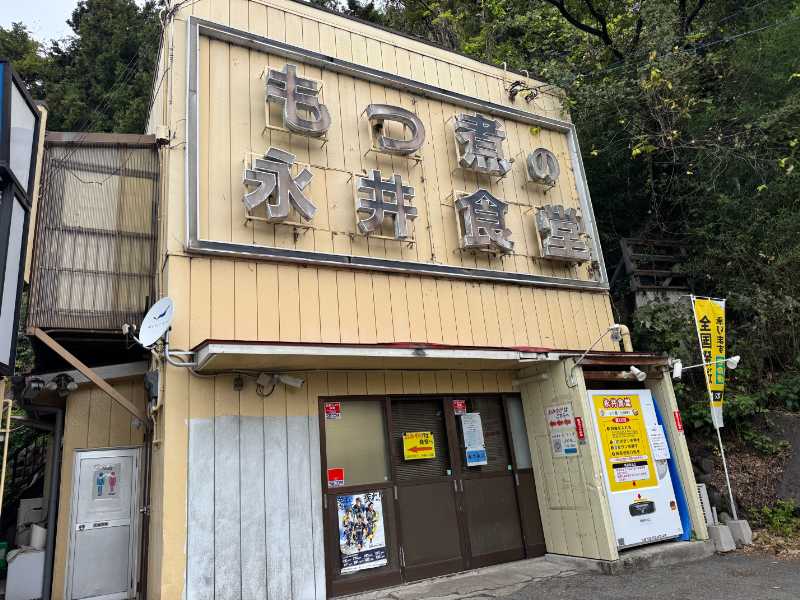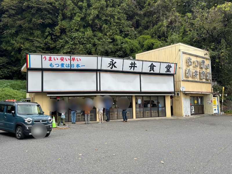 今回訪れたのは、上述のもつ煮の名店として全国的な知名度を誇る、群馬県渋川市の国道17号線沿いにある『永井食堂』。