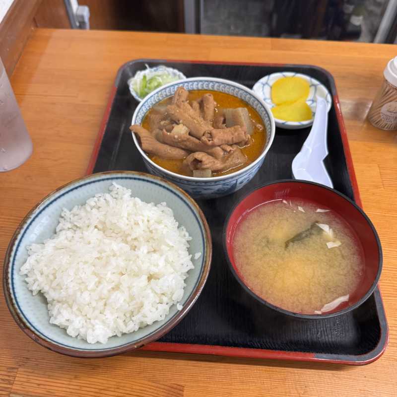 お客さんの「定食も食べたい」という声から、1970代中頃から定食を作り始めるようになり、創業者が試行錯誤して完成したのが、現在の看板メニューである「もつ煮定食」。