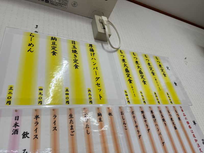 創業者は元々渋川駅前で豚のガツやレバーなどホルモンの部分を焼き、焼酎などお酒と共に売る屋台をしていたそうで、当時まかないで「もつ煮」を作っていたとのこと。