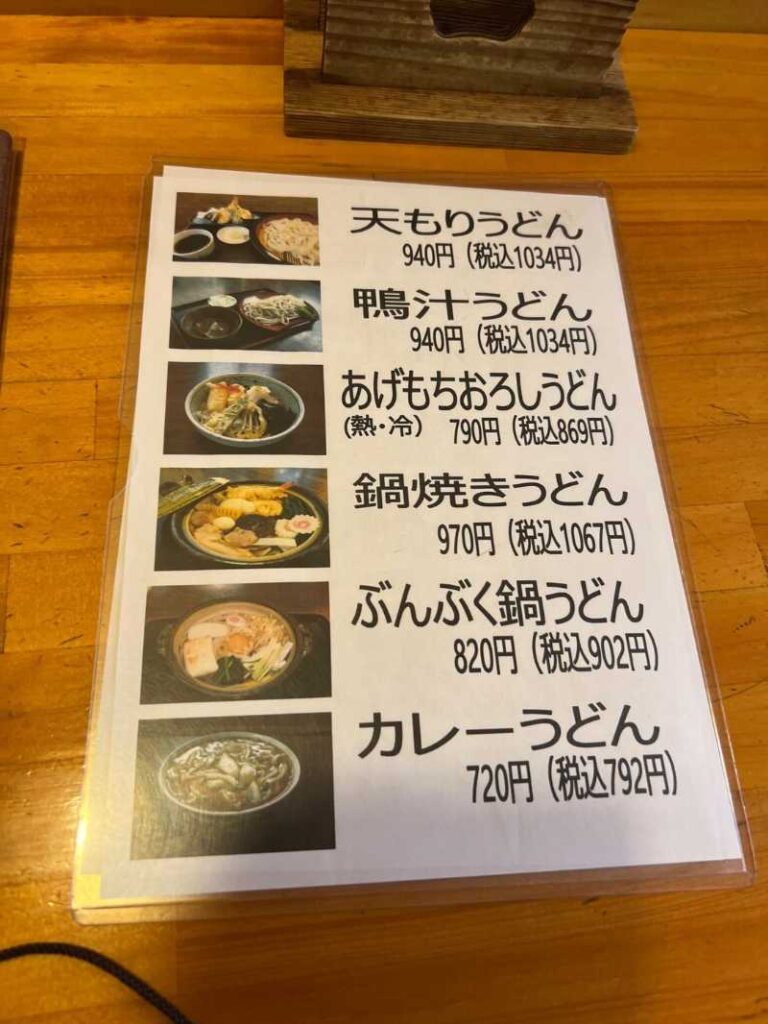 目当ての川幅うどんは3種類あり、公式サイトによるとこの3種類以外にも夏限定の「上流・下流の2537川幅ごま汁うどん」というメニューもあるようです。