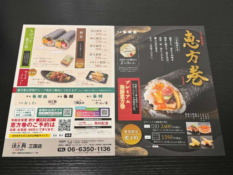 2026年の恵方は『南南東』!『恵方巻き』に副菜も付いた節分の要予約・数量限定メニュー『開運玉手箱』!【流れ鮨三代目おとわ 三国店】(大阪府大阪市)
