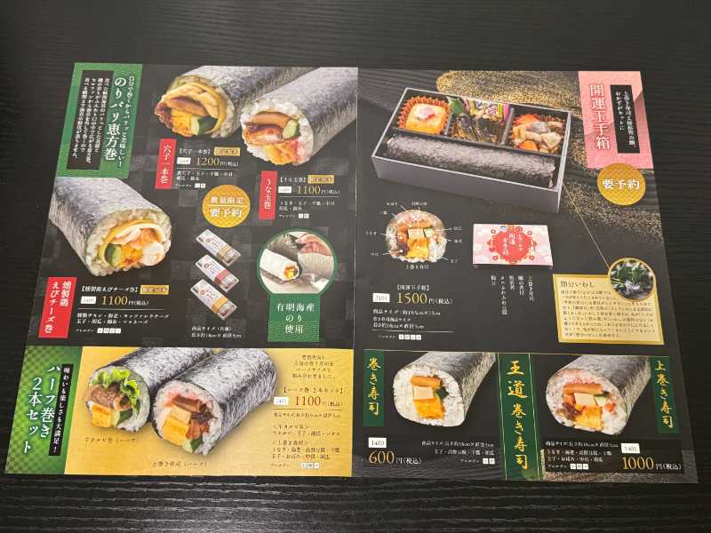 ネット注文時のメニューと、店内に置いてあった恵方巻きのパンフレットはこんな感じです。