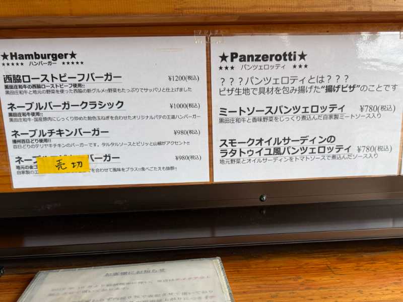 「黒田庄和牛」を中心に、「播州百日どり」や新鮮な季節野菜など、地元産食材にこだわったハンバーガーが看板メニューで、こちらのお店では『西脇ローストビーフ』もハンバーガーにして提供されています。