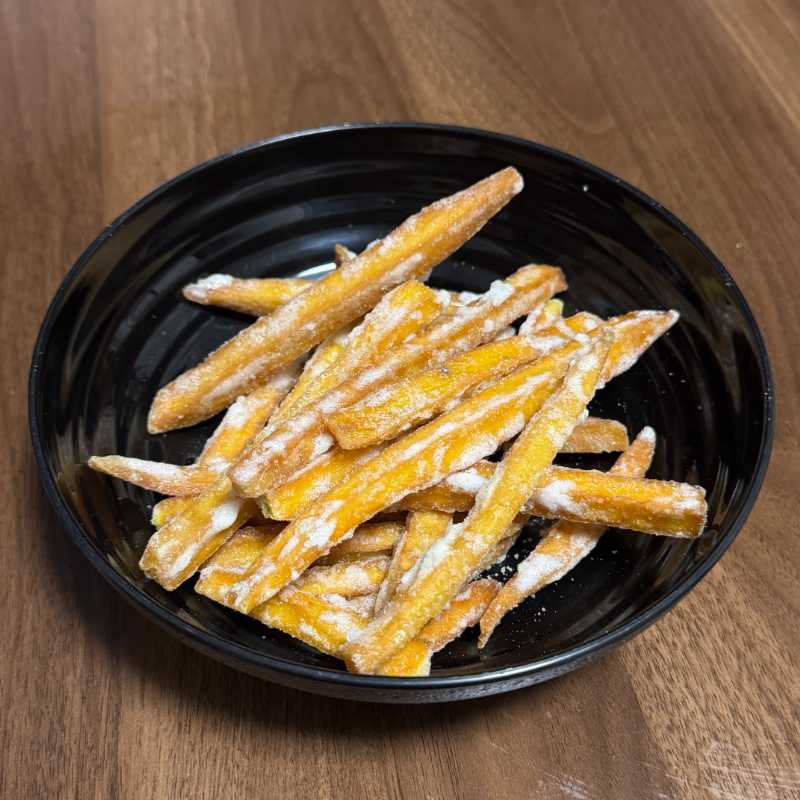 全国的にはさつまいもを細長く切って油で揚げ、糖蜜を絡めた「芋けんぴ」の方が有名という印象を受けますが、「芋けんぴ」はそもそも元来からの郷土菓子である「けんぴ」に形状が似ていることが名前の由来。