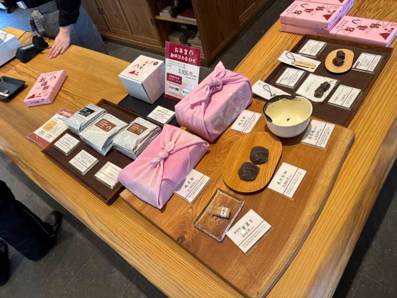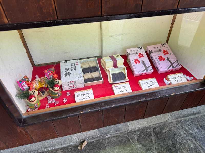 夫婦岩目当ての観光客も多いのか、周辺は車が多くて混雑していましたが、こちらのお店は甘味処の客入りが5割くらいの印象で、売店の待ち列も無くすんなり購入出来ました。