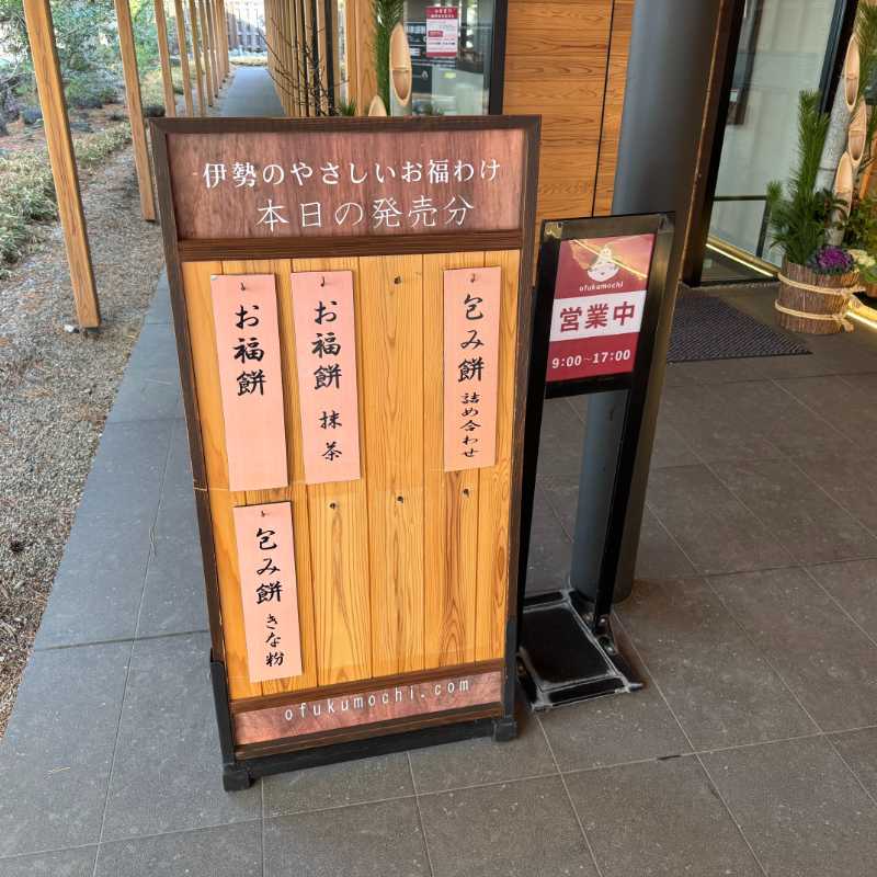 看板商品である「お福餅」は、餅をこし餡で包んだあんころ餅の一種で、二見浦に打ち寄せる波の形を手作業で表現した3本の筋が形作られていることが特徴。