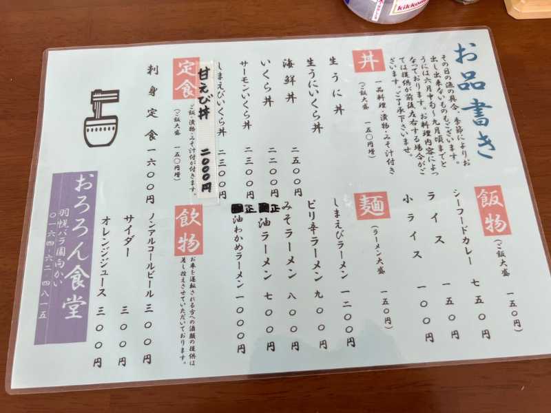 『おろろん食堂』という店名の由来は、天売島に生息している「ウミガラス」の別名「オロロン鳥」が由来ですかね?