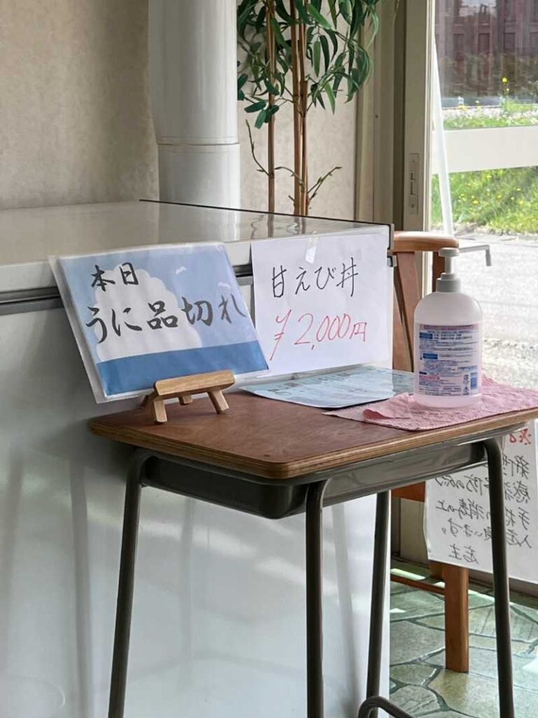 過去に食べログに投稿された写真で見かけたものですが、「生エビうに丼」というメニューがあり、可能ならばウニと甘エビを両方食べたかったのですが、残念ながらこの日はそもそもウニ自体品切れ。
