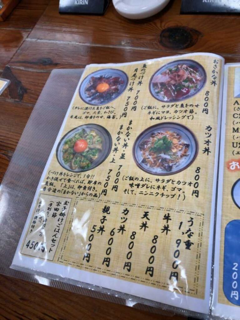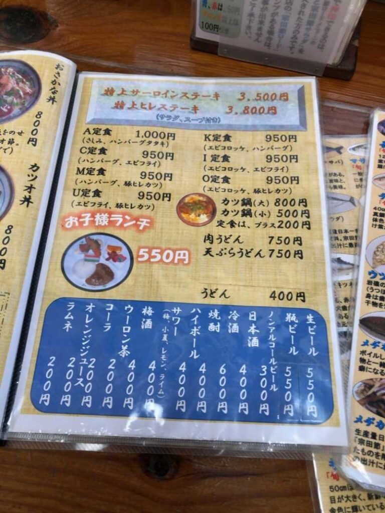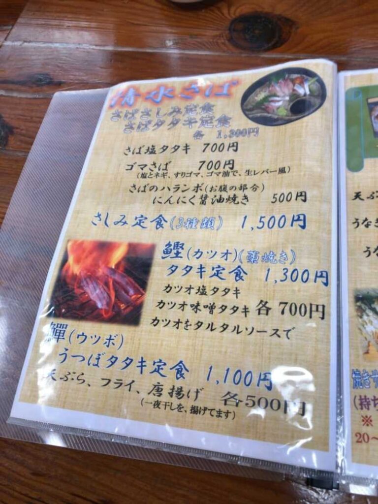 メニューは清水サバを筆頭に、カツオやウツボなどの高知を代表する海鮮メニューの他、しょうが焼きや唐揚げといった一般的な定食系など幅広いラインナップ。
