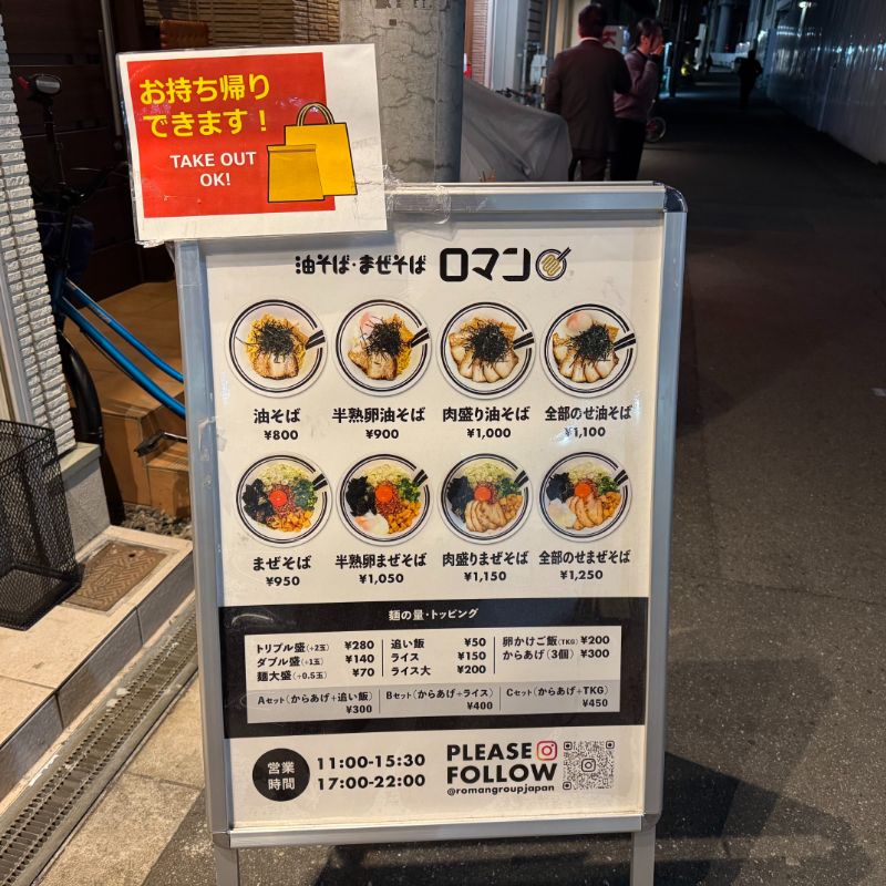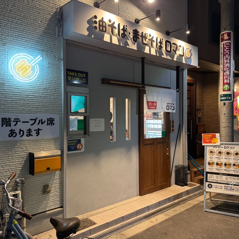 大阪府大阪市東淀川区の阪急淡路駅前にて、2025年6月4日にオープンしたお店『油そば・まぜそば ロマン 淡路店』。