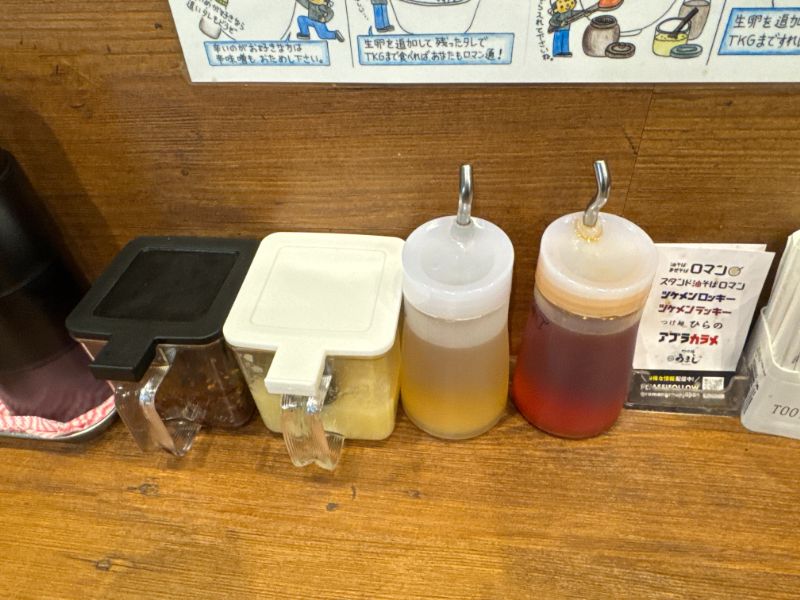 そのままだと辛さも控えめなので、卓上には好みに味変可能な辛味噌やニンニク、追いタレなども用意されています。