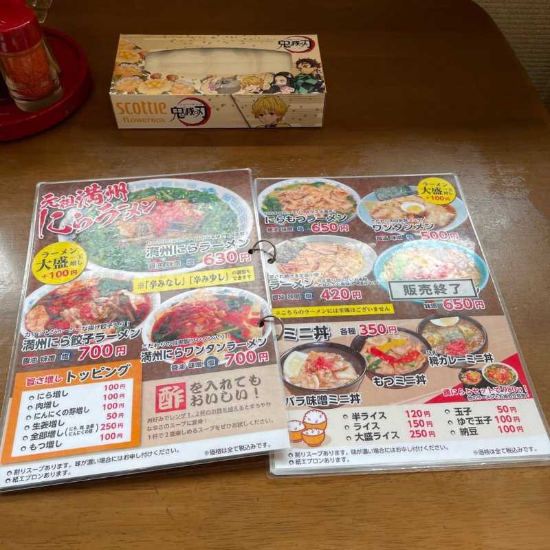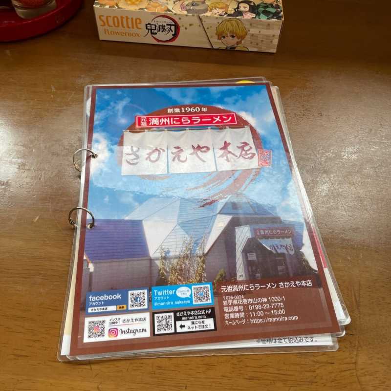こちらのお店の他にも、「満州にらラーメン」を掲げる『さかえや』という名前のお店が滝沢市や花巻市東和町などにあるようですが、過去に暖簾分け?したお店なのか、直営の支店ではないものの関係性がよくわからず。