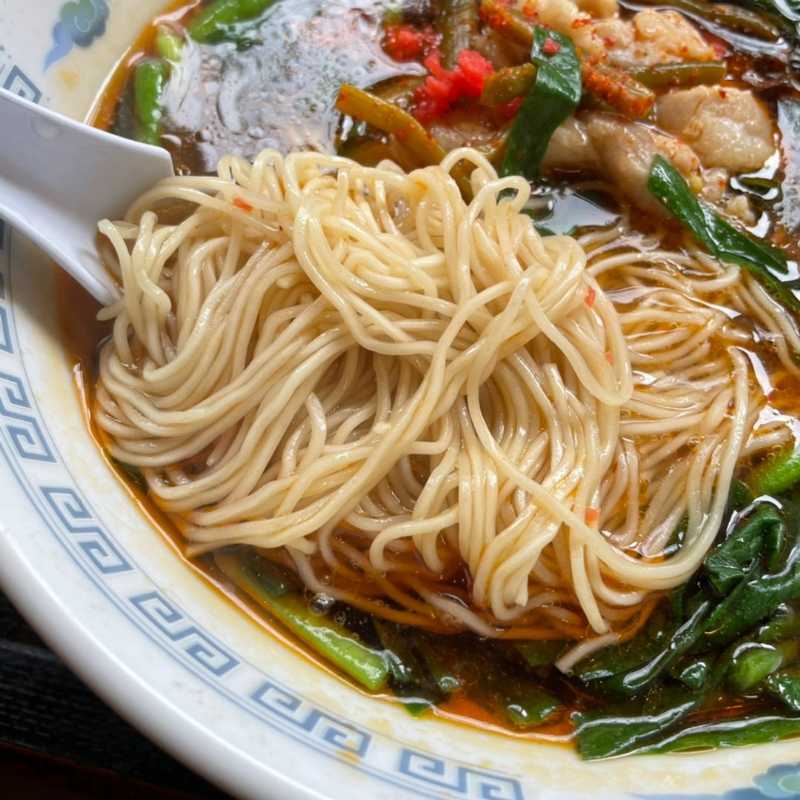 ラー油が表面を覆っているので、気を付けて麺を啜らないとむせるタイプです。笑