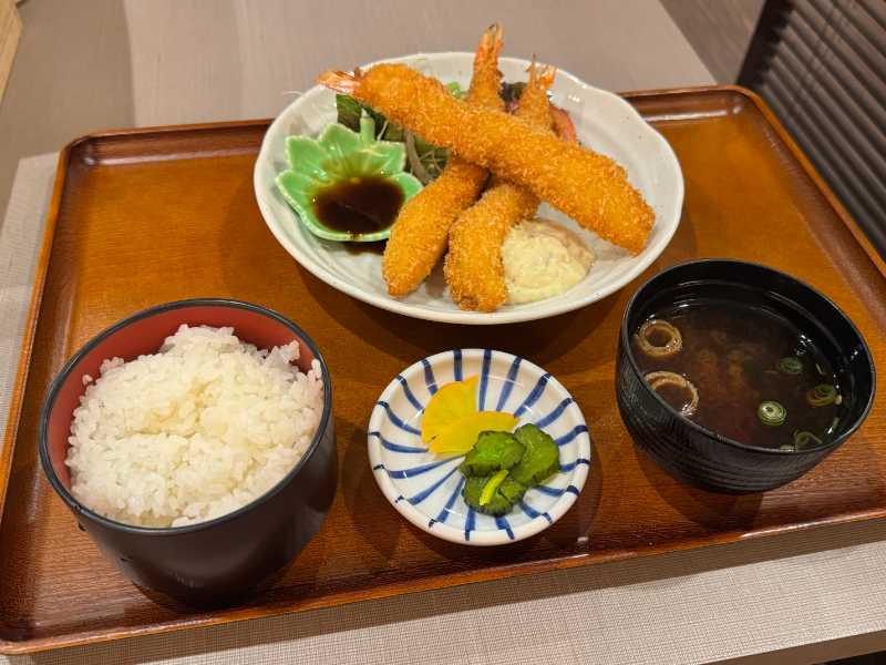目当ての「アカアシエビ」を使ったメニューは天ぷら定食とフライ定食があったので、今回は『足赤海老フライ定食』を注文!
