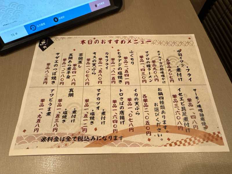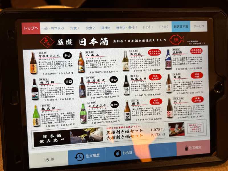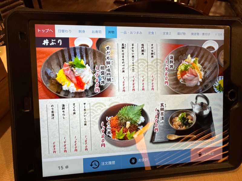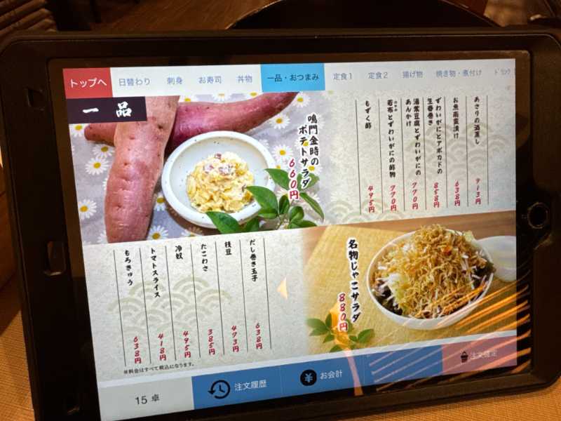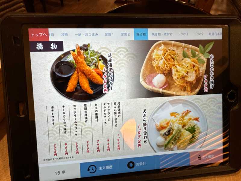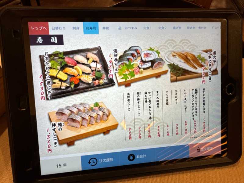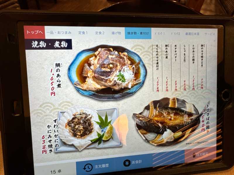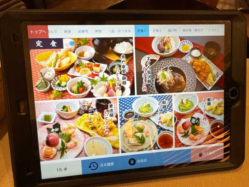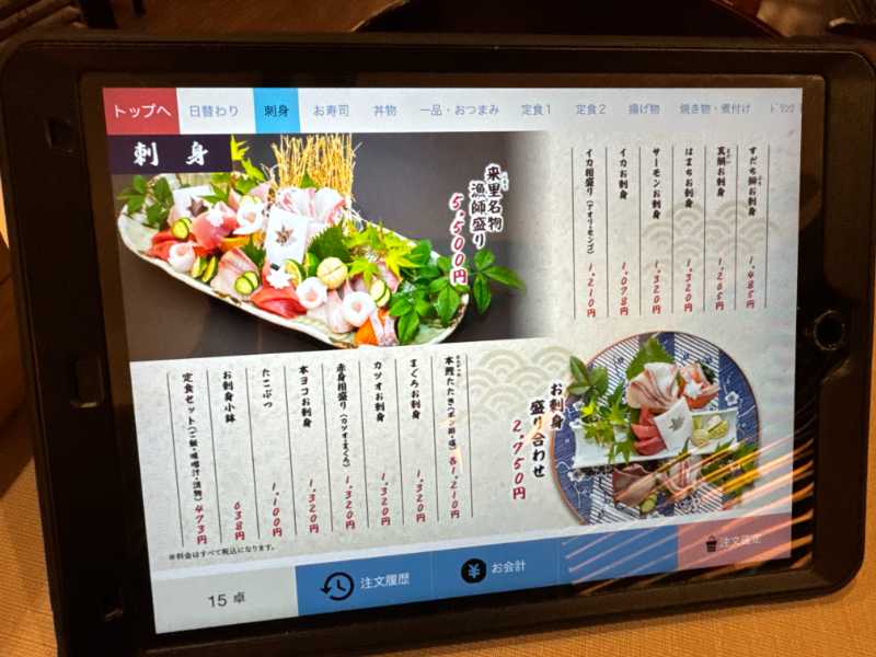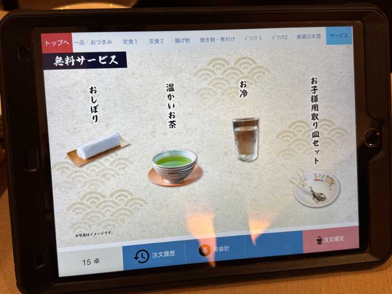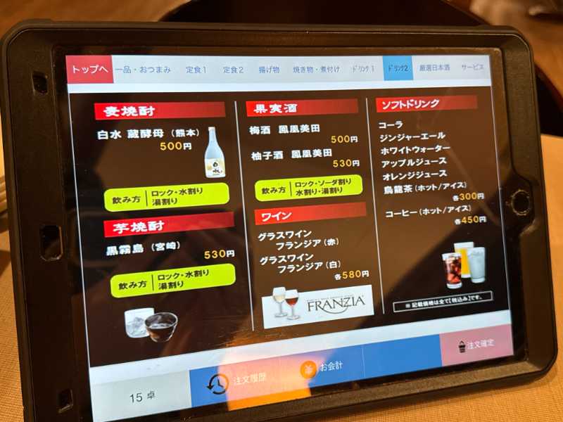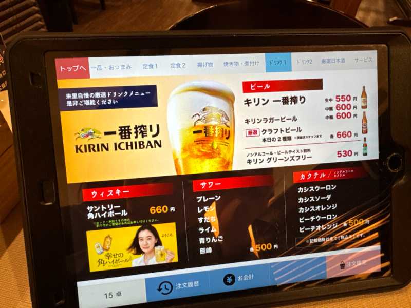 注文は各席に置いてあるタブレットで入力。