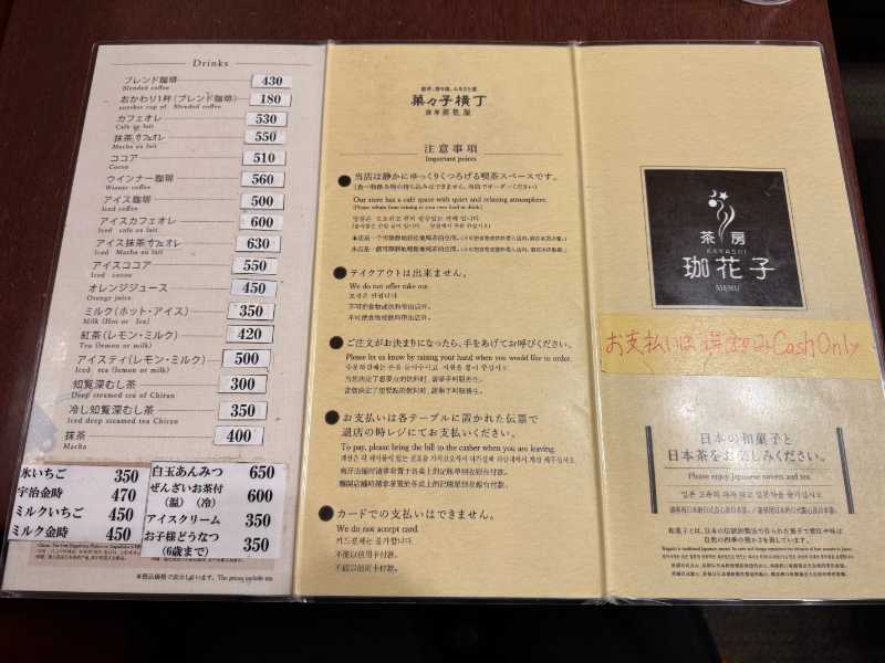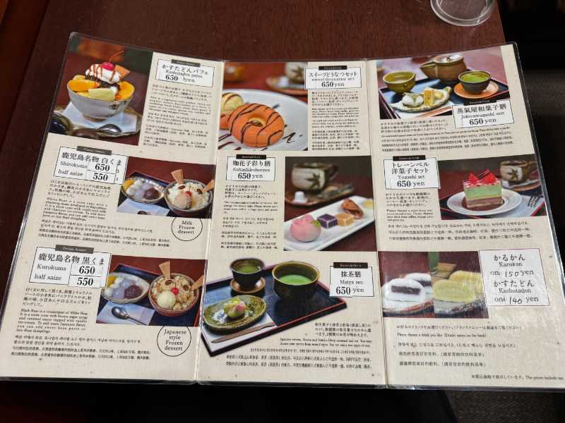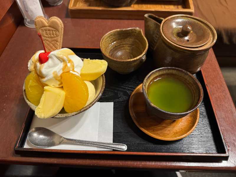 今回は茶房で『かすたどんパフェ』と『知覧深むし茶』を注文。