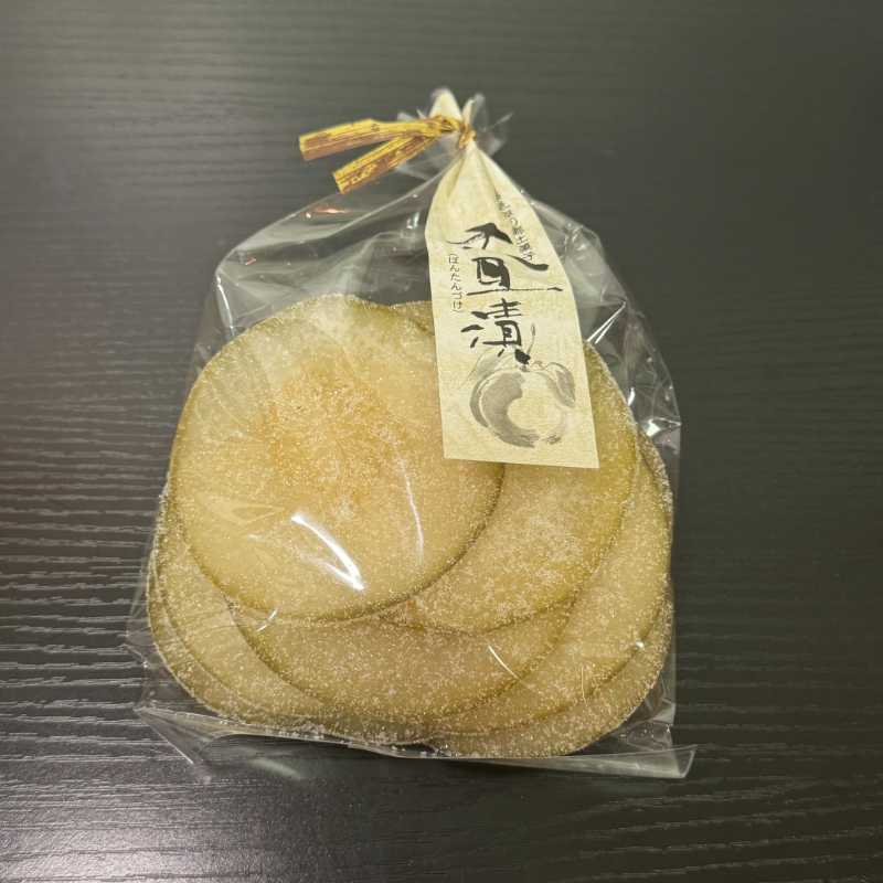 青切という若いボンタンを摘果してまるごとスライスしたものを使用しており、表面はシャリシャリとした歯応えのある食感。