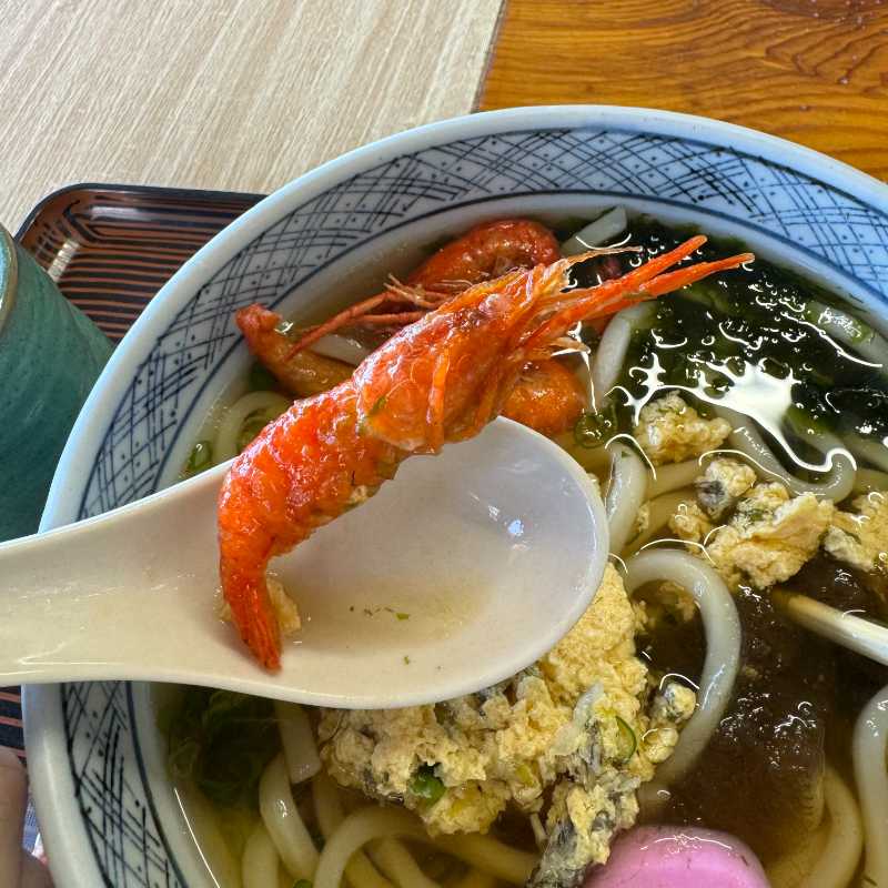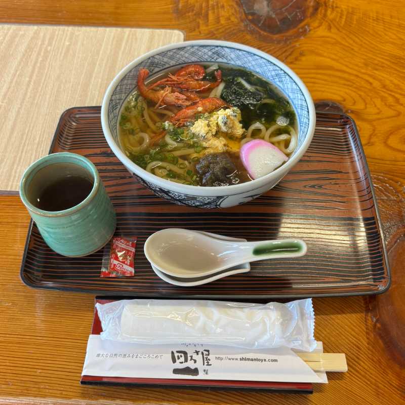 前回は天然うなぎをいただいたので、今回は四万十川名物である、ごり・川えび・青さのりを一度に楽しめる『四万十うどん』を注文!