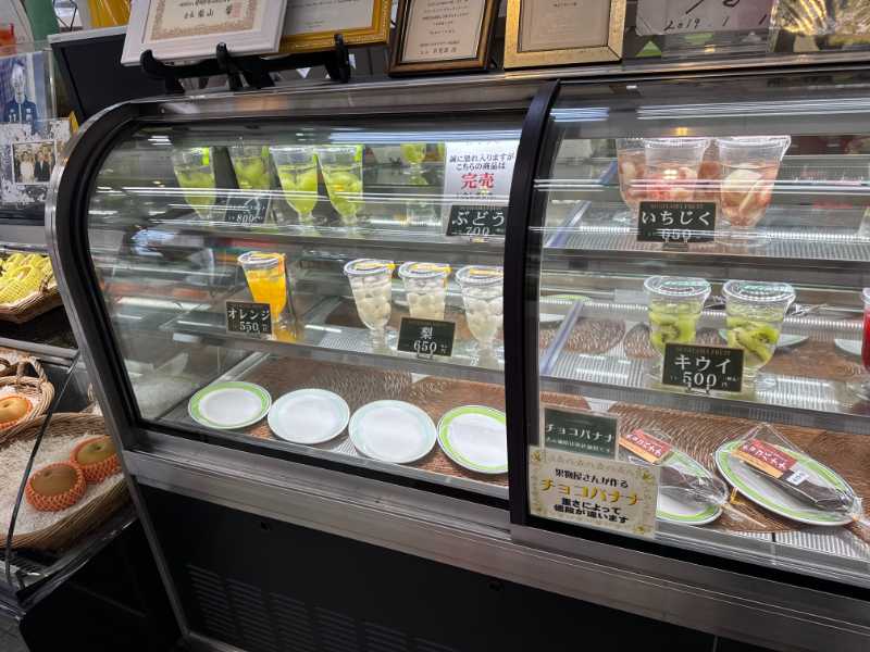 静岡県御殿場市に、同じく生フルーツゼリーが有名な「フルフール(FruFull)」というお店がありますが、店主の方はこちらの『杉山フルーツ』で修業されたという情報を目にしました。