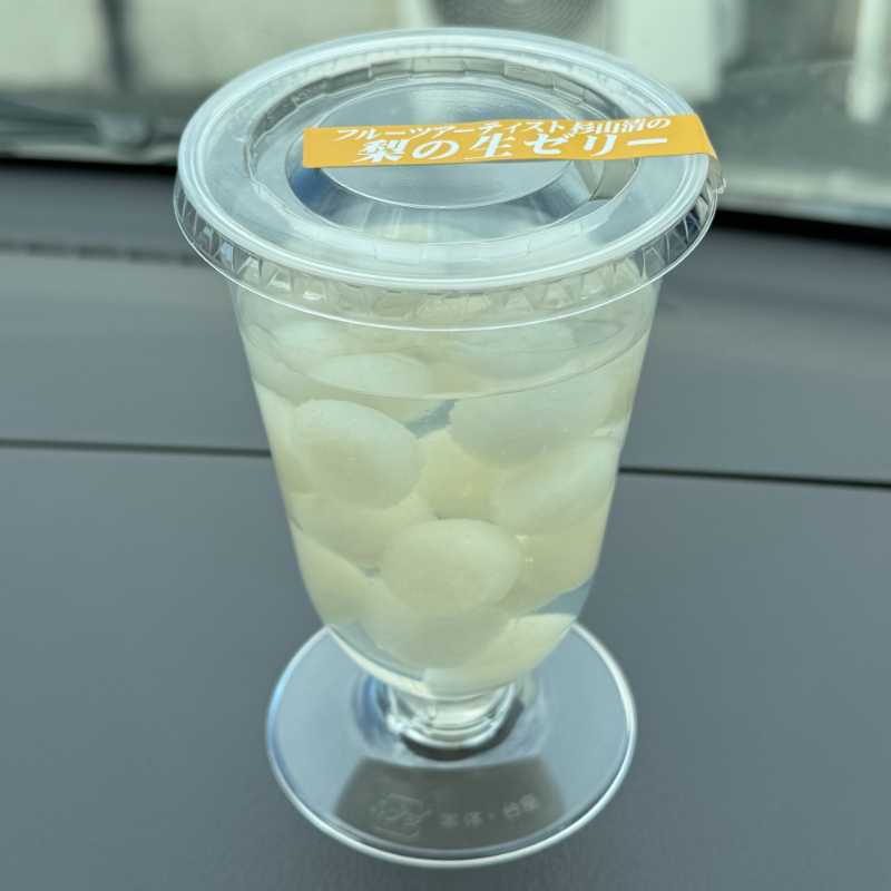 プルンと程良い弾力ととろける舌触りのゼリーに、梨はシャクッと食感が良くジュワッとジューシー、しっかり甘い中に程よい酸味が相まって後味さっぱり。