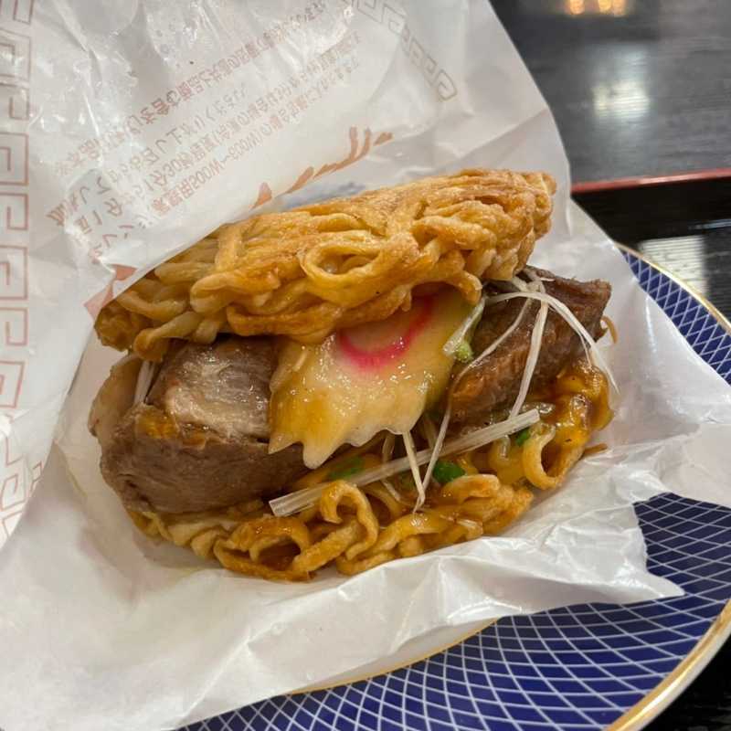 ラーメンの具材を使って作られた面白いご当地バーガー『喜多方ラーメンバーガー』!【道の駅 喜多の郷 ふるさと亭】(福島県喜多方市)