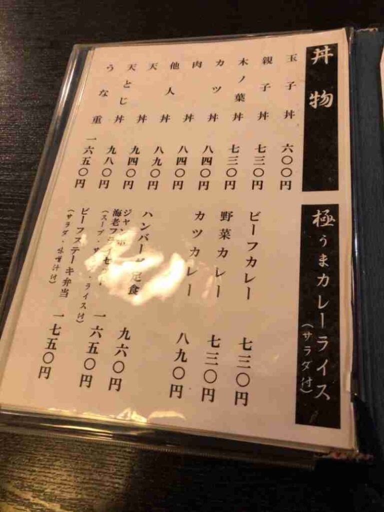 たろめん以外にも、うどん・そば、様々な定食類や丼ものなど、幅広いメニューを取り揃えた食事処。
