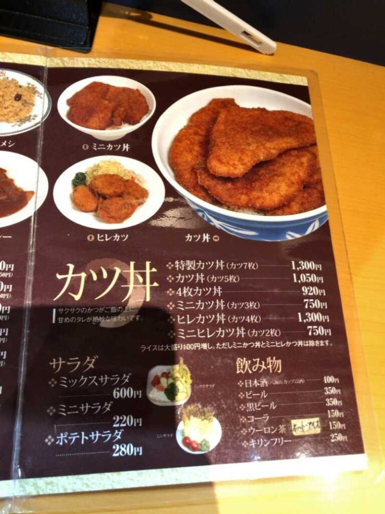 メニューはカツ丼をメインに、とんかつやエビフライなどの定食やカツカレーもありました。