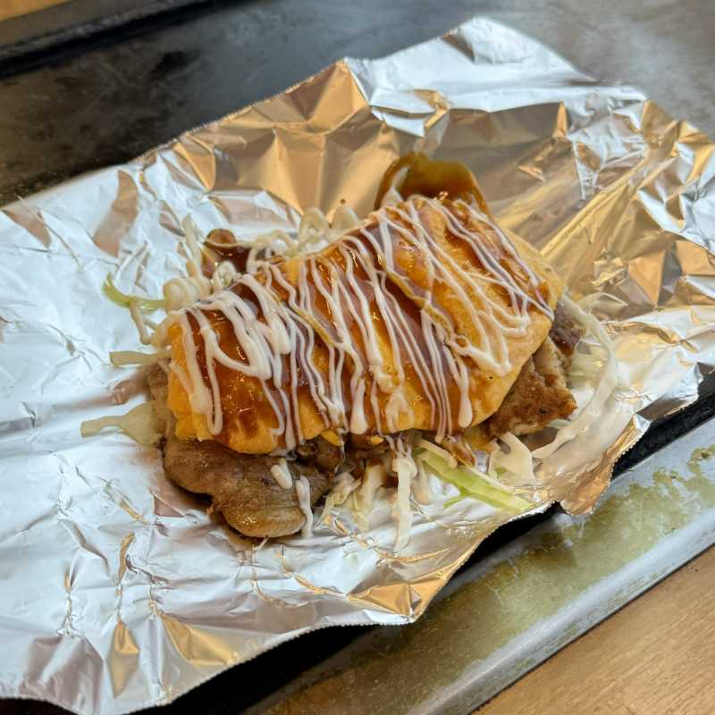 元来は粉もの料理の一種ですが、近年では小麦粉生地を用いず卵で豚肉を包んで焼いたものも多く、千切りキャベツやネギを加えたもの、円形、小判型、オムレツ型など、そのスタイルはお店によって様々。