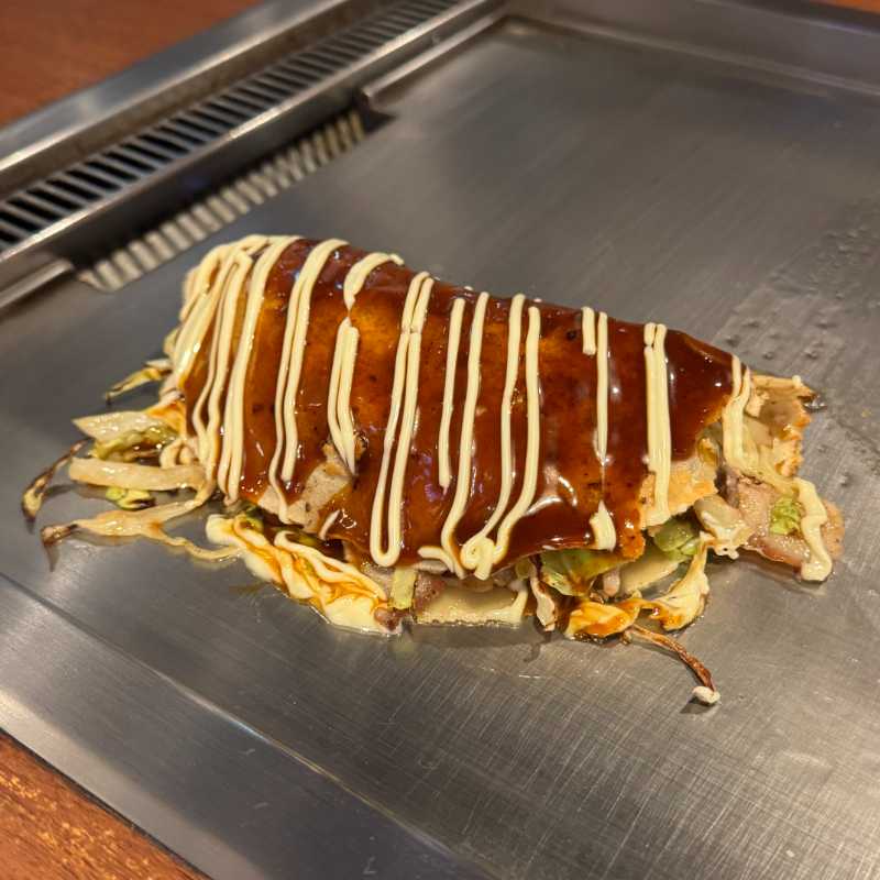こちらは小麦粉生地でキャベツ・豚・半熟玉子を包んだオムレツ形状のとん平焼き。