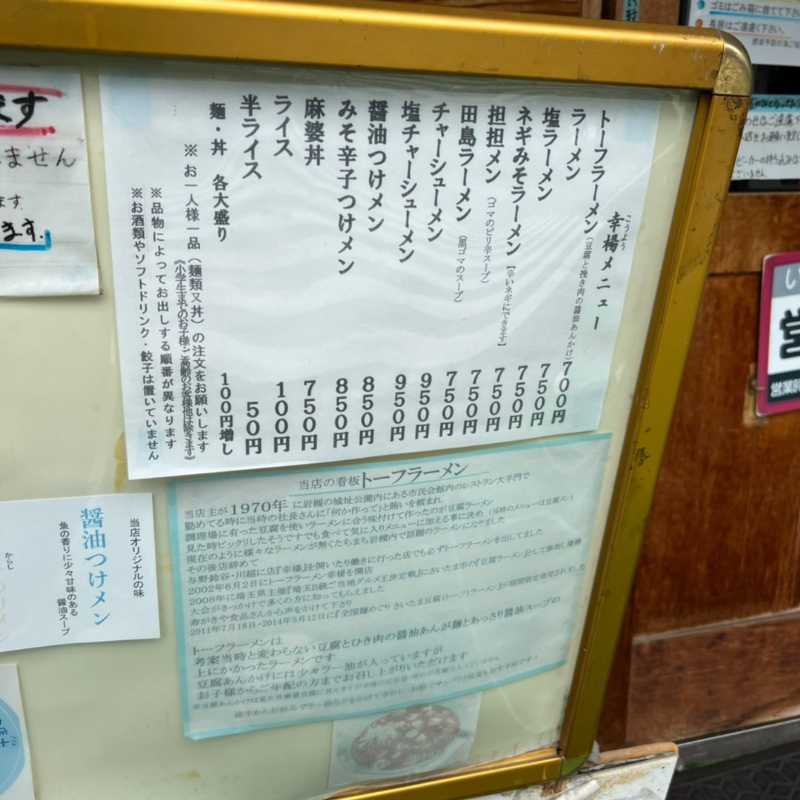 その後レストラン大手門を辞めて、与野鈴谷・川越に「幸楊」を開いたり、別の店に働きに行った際も必ず「豆腐ラーメン」を提供していたそうです。
