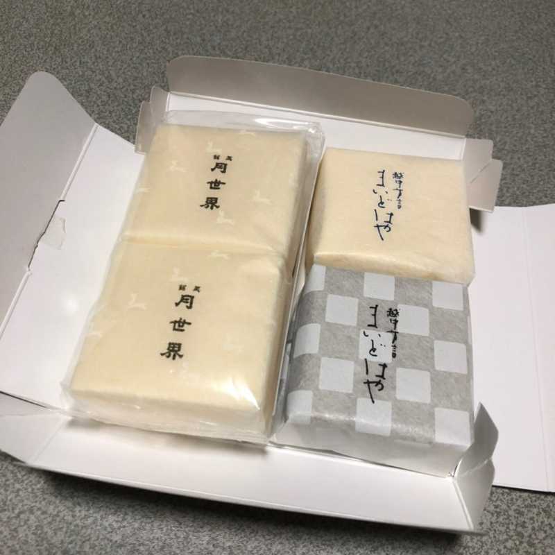 商品写真は撮っていませんが、店内の商品は月世界と、マシュマロ風のお菓子「まいどはや」が中心。