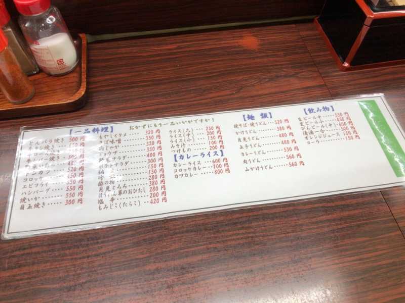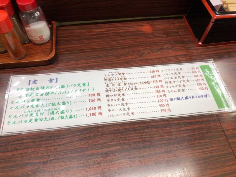 メニューは人気の「とんバラ定食」をはじめ、様々な定食メニュー、一品、麺類などが並びます。