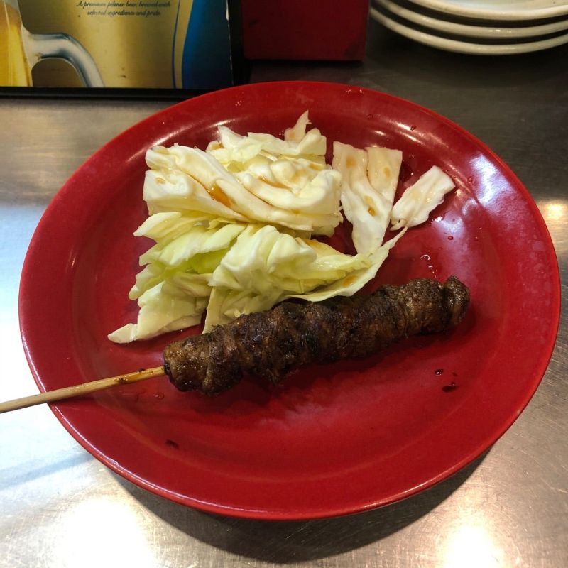 博多名物の鶏皮の串焼き。