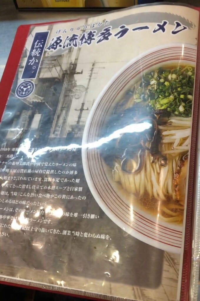 今回は博多ラーメンの歴史に触れたくてこちらのお店を訪れたので『源流博多ラーメン』を注文。