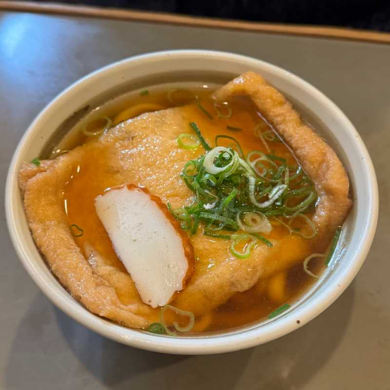 初代は元々寿司屋で修業をした経歴を持つため、いなり寿司用の甘辛く炊いた油揚げを、うどんの付け合わせとして別皿に盛って提供していたとのこと。